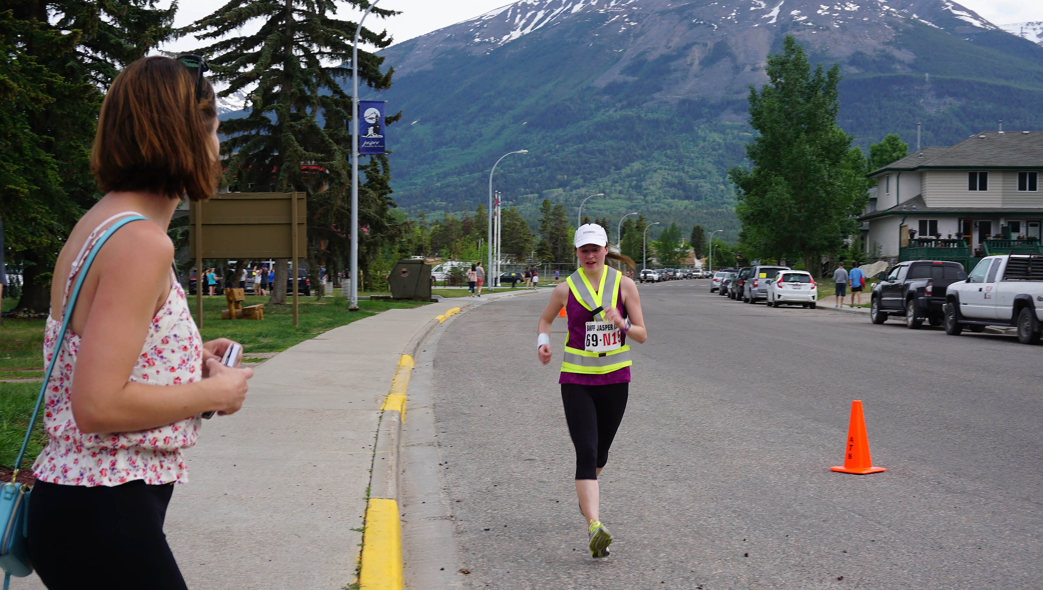 I was recruited to join team ‘Thighs High’ by my coworker Casey soon after I started training for a marathon in February. It took a lot of persuading on his part because at that time I could hardly run 5km, nonetheless 20km and just the thought of running 20km was terrifying. After reading everything I could find about the race, analyzing the routes of the four legs left unassigned, and speaking with my marathon training coaches I made a decision. My coworker won and I wrote my name down on the sign-up sheet on the lunchroom kitchen fridge. I took the last leg of the race, leg 15. It’s a relatively flat 19.6 km route along Highway 93, which ends at the race finish line in Jasper.